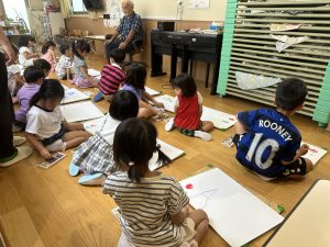 やまむら先生に来ていただいて、絵画あそびをしました。