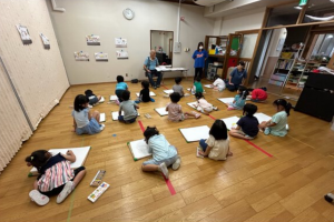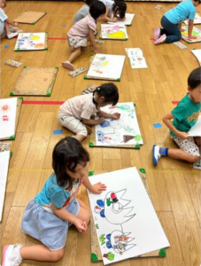 ぐりとぐらの絵本をテーマにお話しに出てくる場面の絵を描きました。