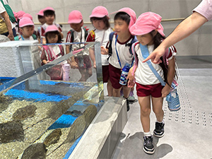 子どもたちは興味津々で、目を輝かせながら水槽の中をのぞきこんでいました。
