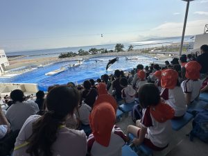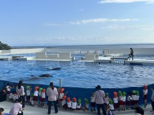 そのあと、大きなシャチのダイナミックなショーが始まり、子どもたちは真剣な表情で見ていましたが、シャチが高くジャンプすると「うわぁー!」と歓声があがり、大喜びでした。