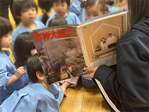 その後、阪神淡路大震災の写真などを見ながらその時のお話を先生から聞きました。